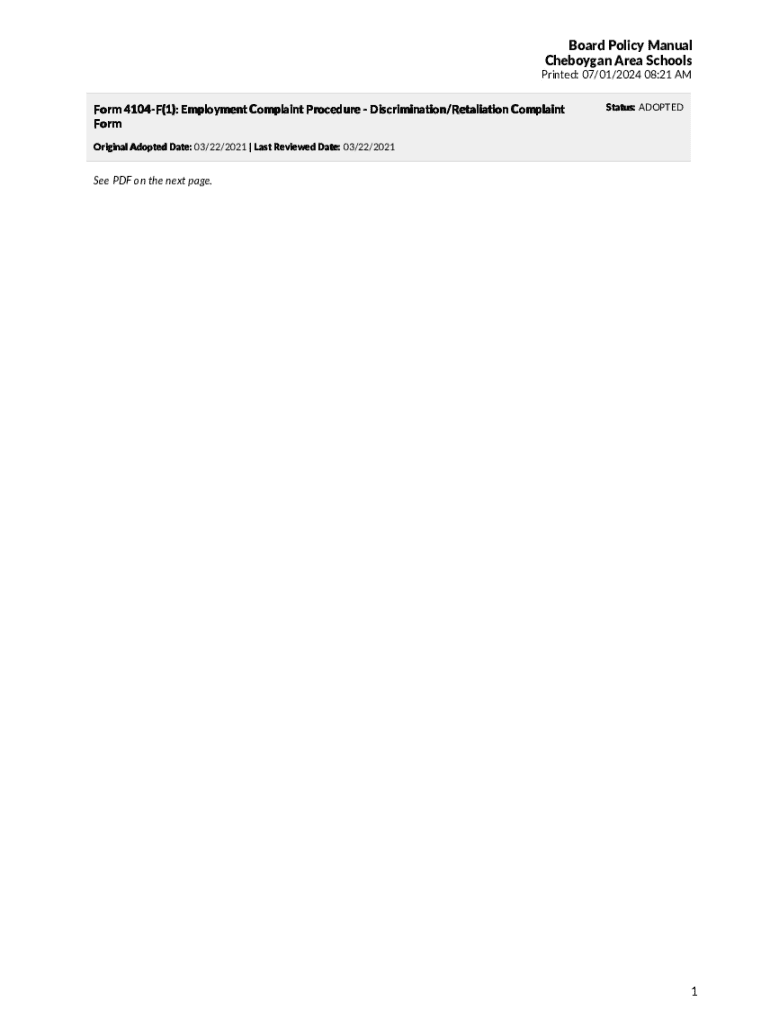 Form 4104-f1 Employment Complaint is not the form you're looking for?Search for another form here.