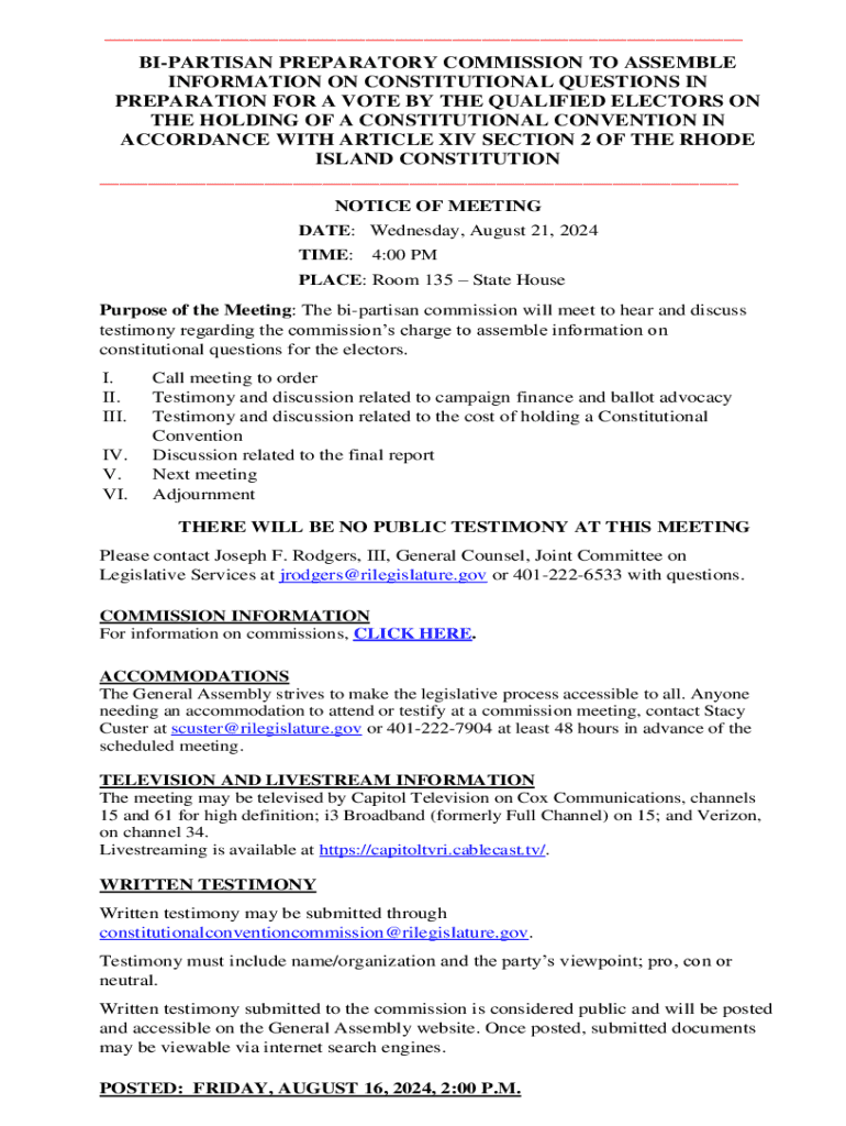 Get the free BI-PARTISAN PREPARATORY COMMISSION TO ASSEMBLE
