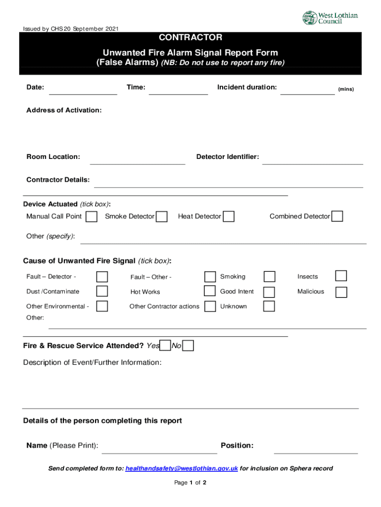 Unwanted Fire Alarm Signal is not the form you're looking for?Search for another form here.