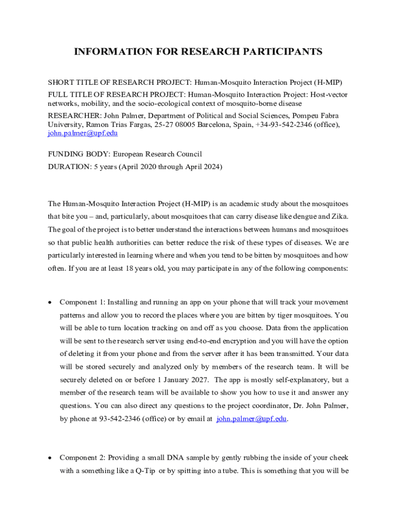 Get the free Information for Research Participants