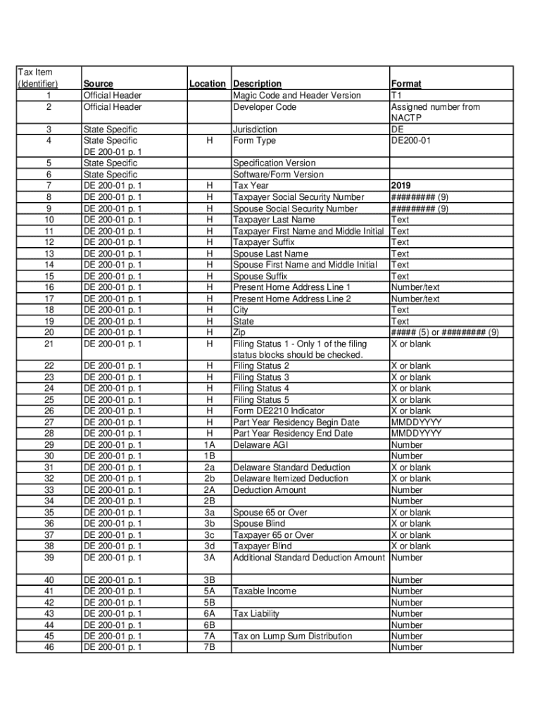 This document is used for filing individual income tax returns in the state of Delaware. It includes various fields for taxpayer information, income details, deductions, credits, and tax liabilities. Specific sections are designated for taxpayers and spouses, emphasizing particular deductions and exemptions based on age and disability status.