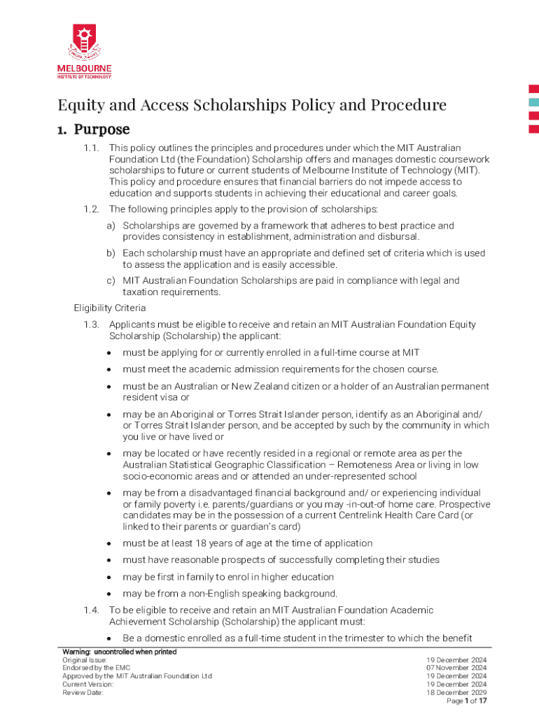 Get the free Equity and Access Scholarships Policy and Procedure