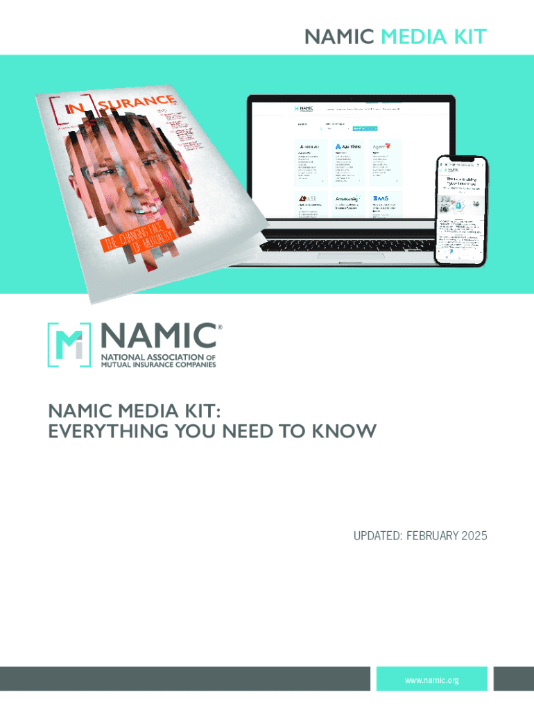 This media kit provides comprehensive information about NAMIC, including advertising opportunities, market statistics, editorial guidelines, and various services aimed at property/casualty insurance professionals. It outlines specific rates, content policies, and dimensions for promotional materials, along with details about sponsorship opportunities and resources available through the NAMIC member marketplace.