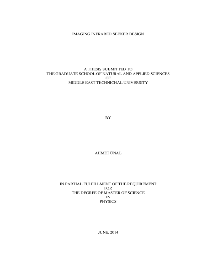 IMAGING INFRARED SEEKER DESIGNA THESIS SUBMITTED TO THE GRADUATE SCHOOL OF NATURAL AND APPLIED SCIENCES OF MIDDLE EAST TECHNICHAL UNIVERSITYBYAHMET NALIN PARTIAL FULFILLMENT OF THE REQUIREMENT FOR THE DEGREE OF MASTER OF SCIENCE IN PHYSICSJUNE, 2014Approval of the thesis:IMAGING INFRARED SEEKER DESIGNsubmitted by AHMET NAL in partial fulfillment of the requirements for the degree of Master of Science in Physics Department, Middle East Technical University by, Prof. Dr. Canan