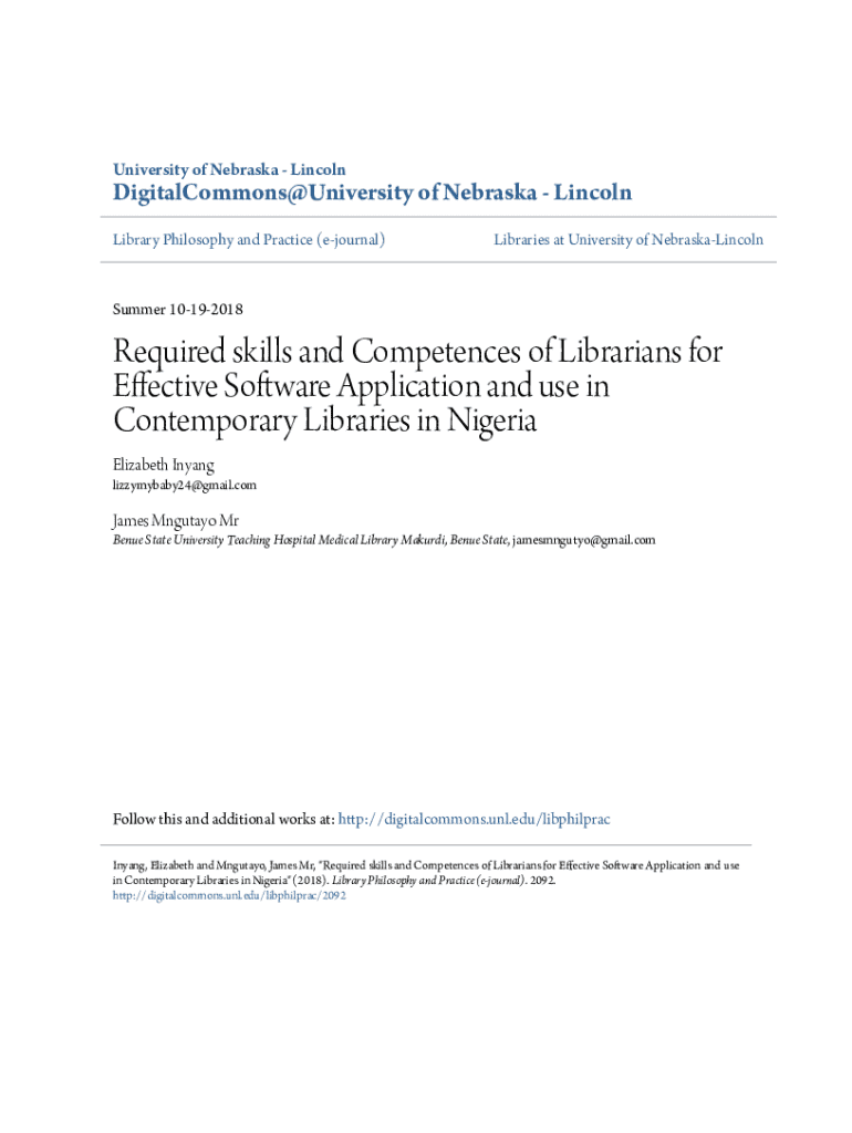Get the free Required skills and Competences of Librarians for - digitalcommons unl