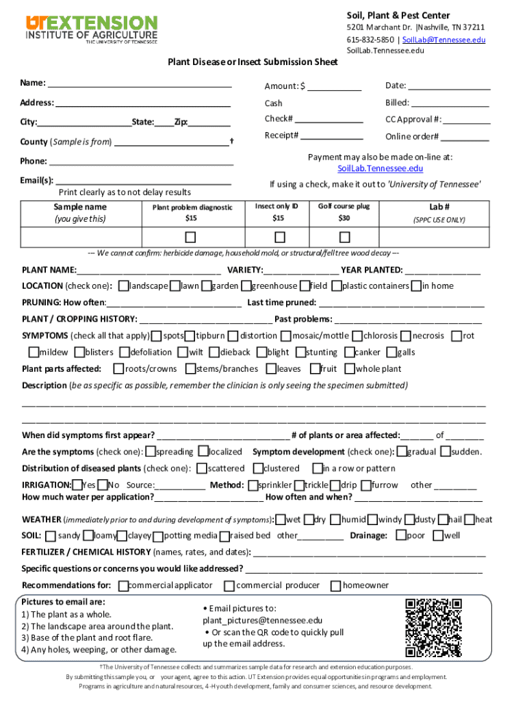Get the free Plant Disease or Insect Submission Sheet