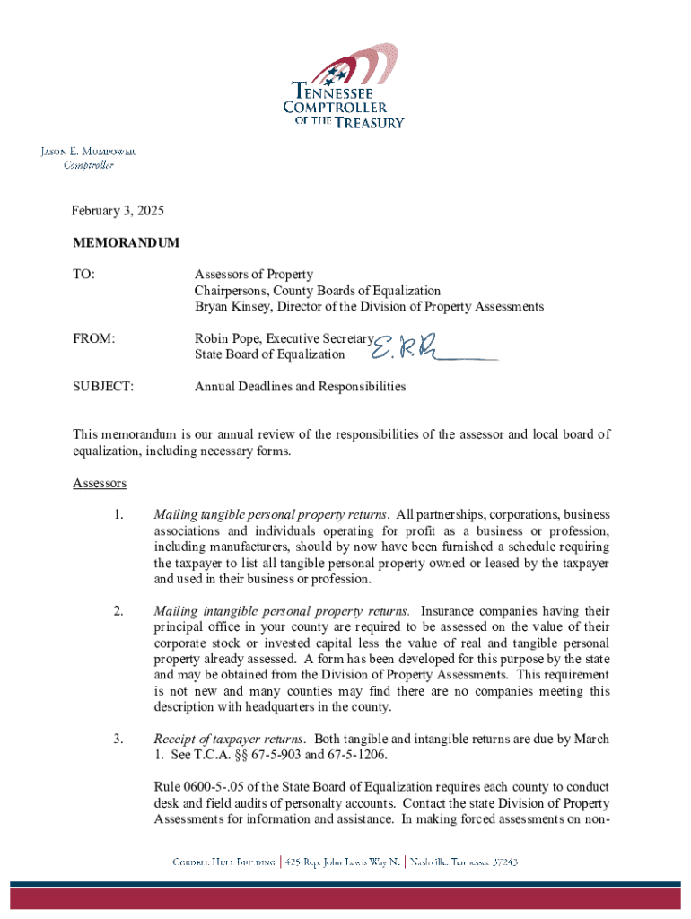 Get the free Memorandum - comptroller tn