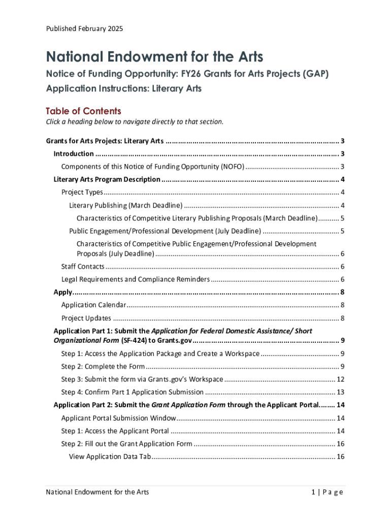 Get the free Notice of Funding Opportunity: Fy26 Grants for Arts Projects (gap)