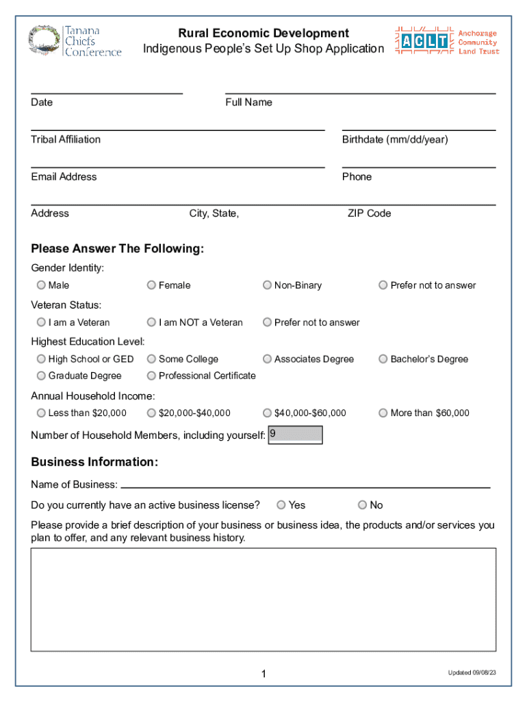 Get the free Indigenous People’s Set up Shop Application