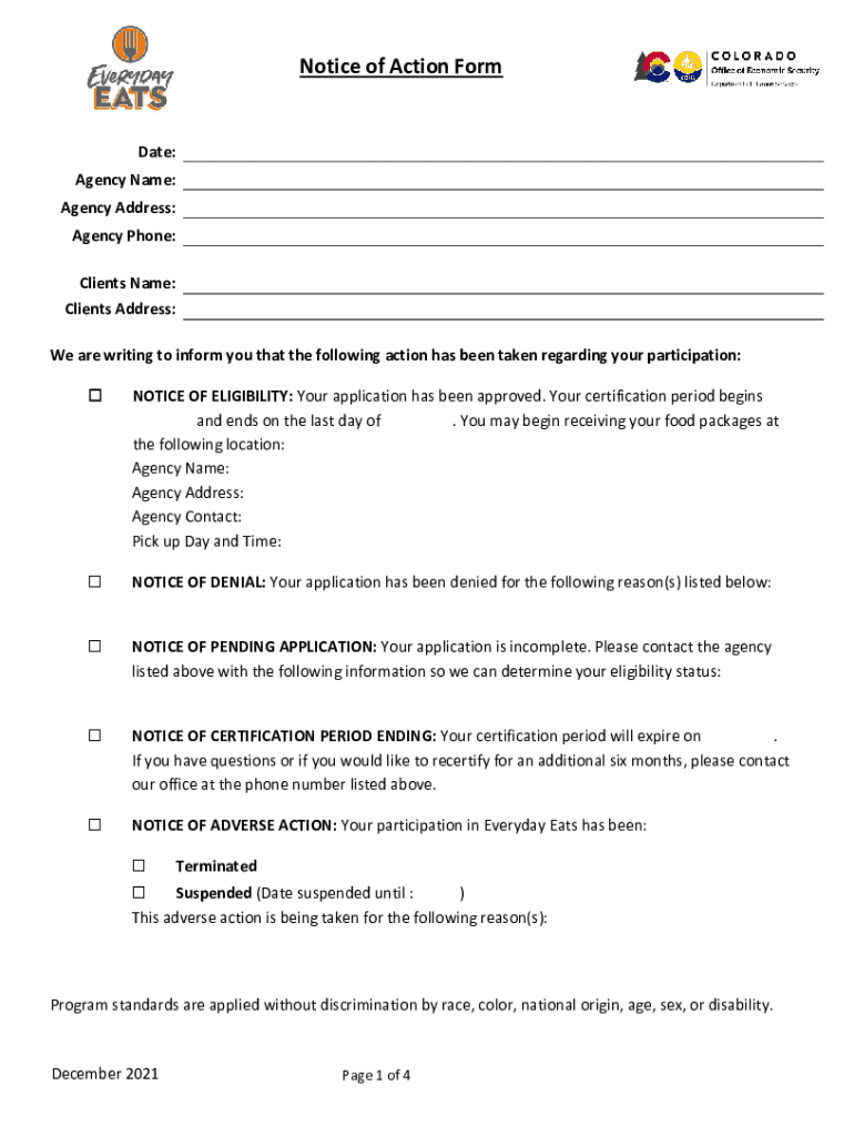 Get the free Notice of Action Form
