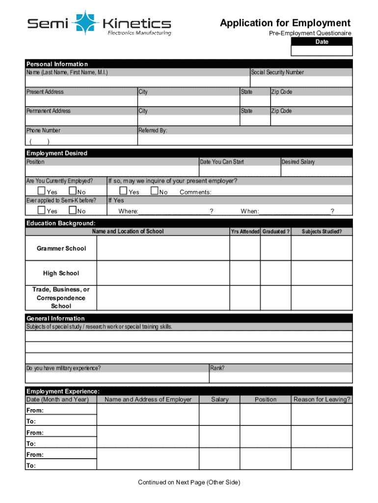 To fill out an application for employment, candidates should provide accurate personal information, detail their work history, list relevant skills and qualifications, and answer any additional questions posed by the employer.