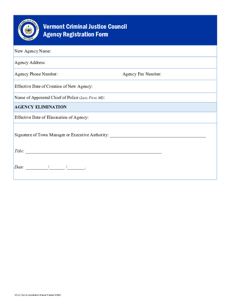 Get the free Vermont Criminal Justice Council Agency Registration Form