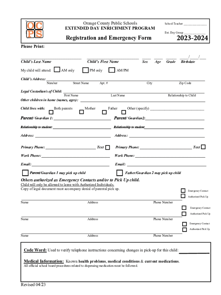 Get the free Extended Day Enrichment Program Registration and Emergency Form