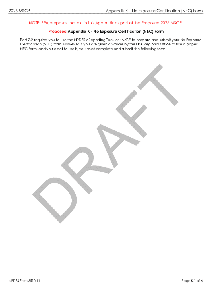 To fill out the No Exposure Certification NEC, one must complete the certification form by providing information about the facility, confirming that no section of the facility has exposure to stormwater, and submitting it to the relevant environmental agency.