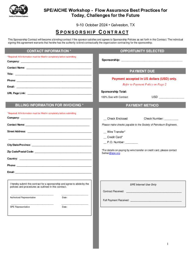How to fill out spe workshop sponsorship contract