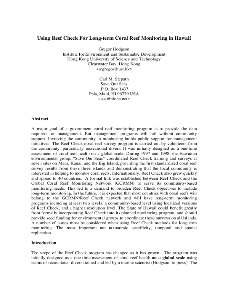 Get the free Using Reef Check For Long-term Coral Reef Monitoring in Hawaii
