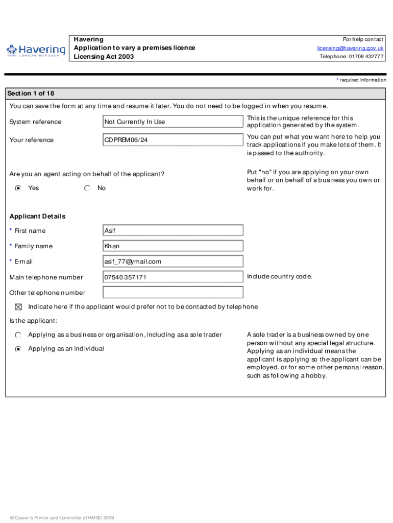 Get the free Application to Vary a Premises Licence