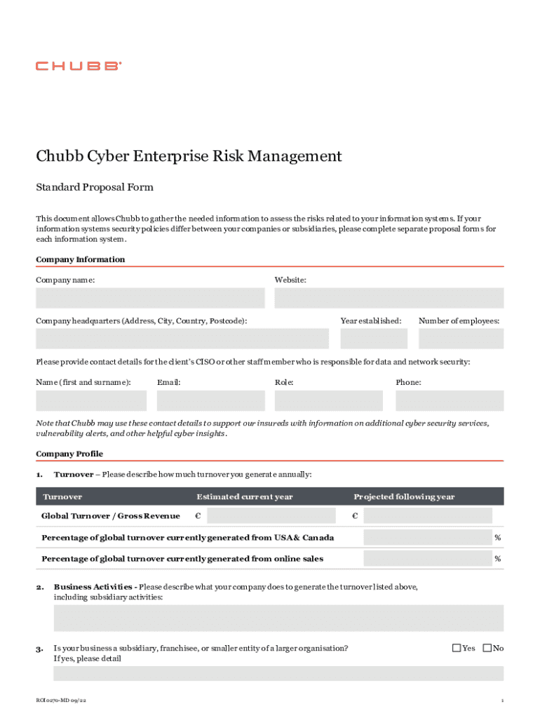 Get the free Chubb Cyber Enterprise Risk Management Standard Proposal Form