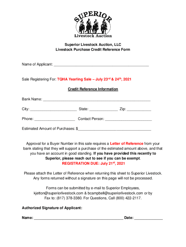 Livestock producers or buyers who are seeking financing to purchase livestock are generally required to file a livestock purchase credit reference with lenders.