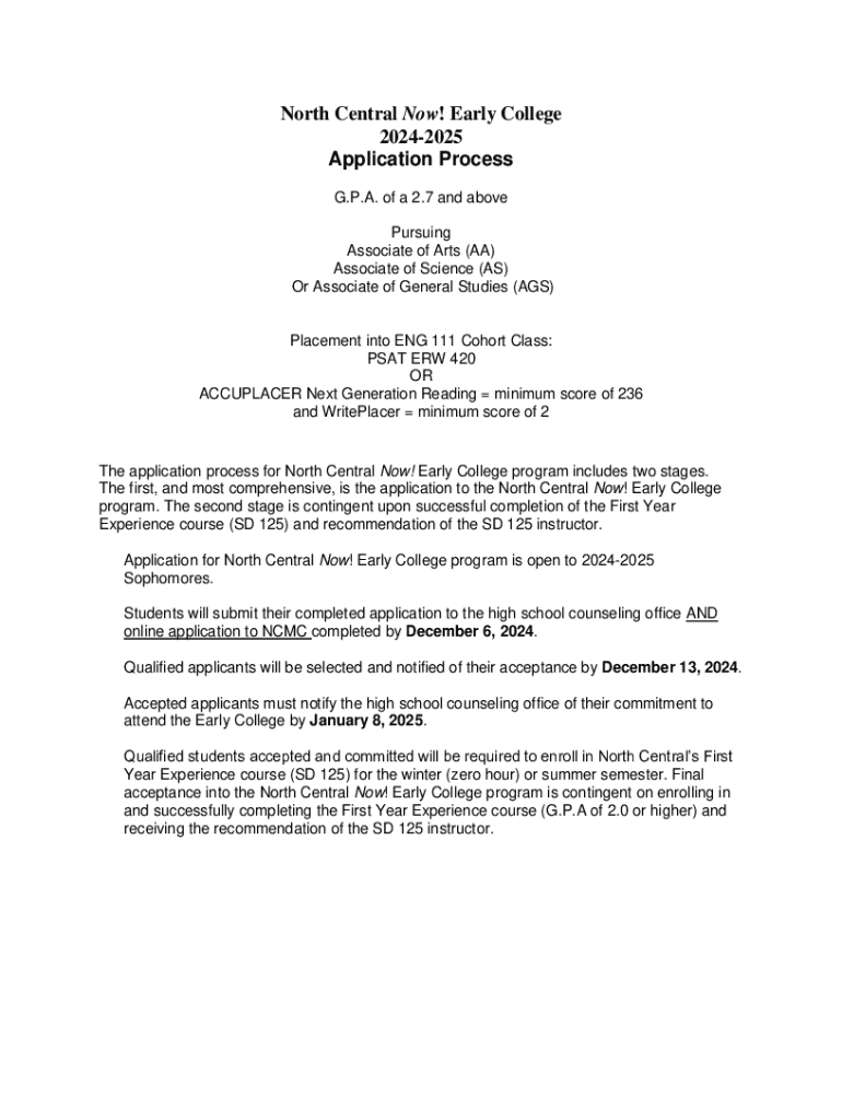 Get the free North Central Now! Early College Application