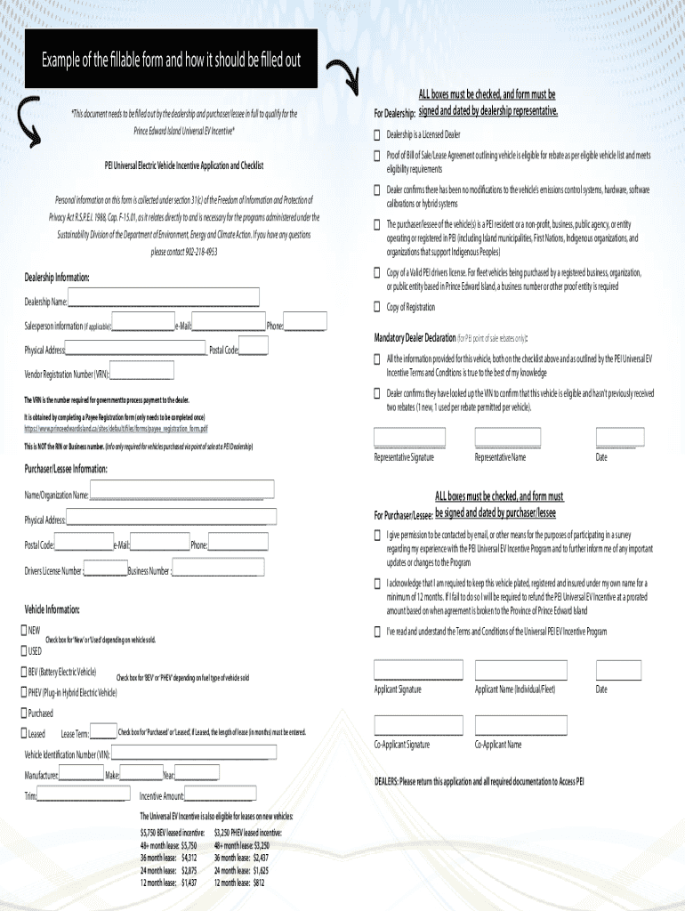 Get the free Pei Universal Electric Vehicle Incentive Application and Checklist