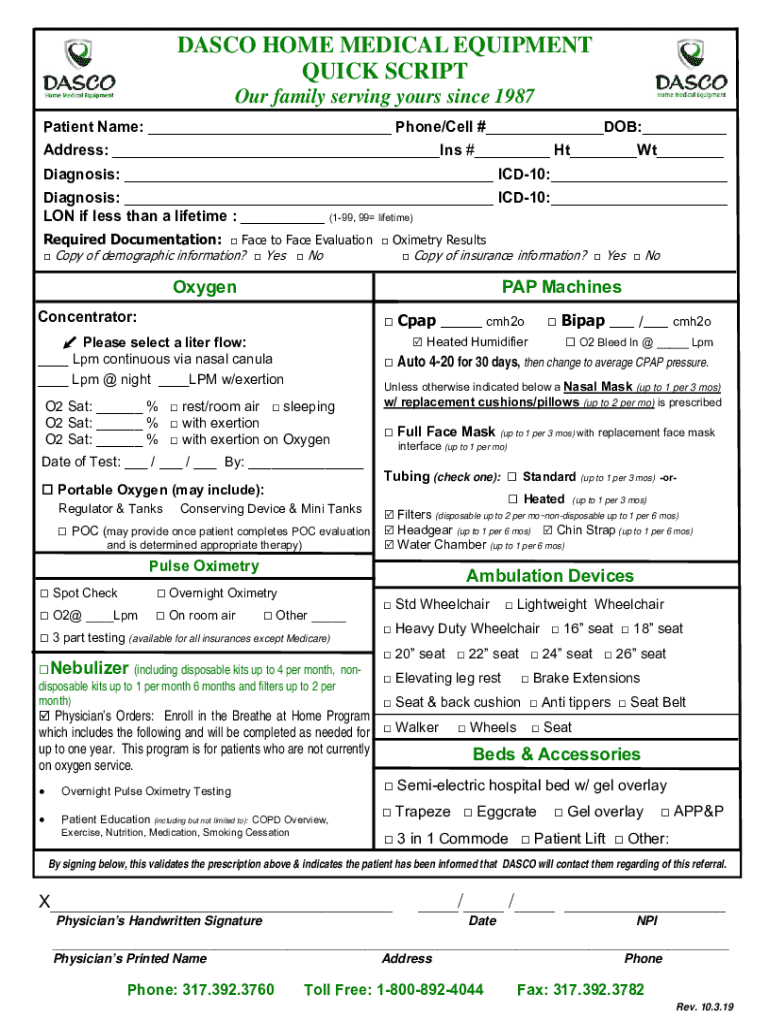 How to fill out dasco home medical equipment