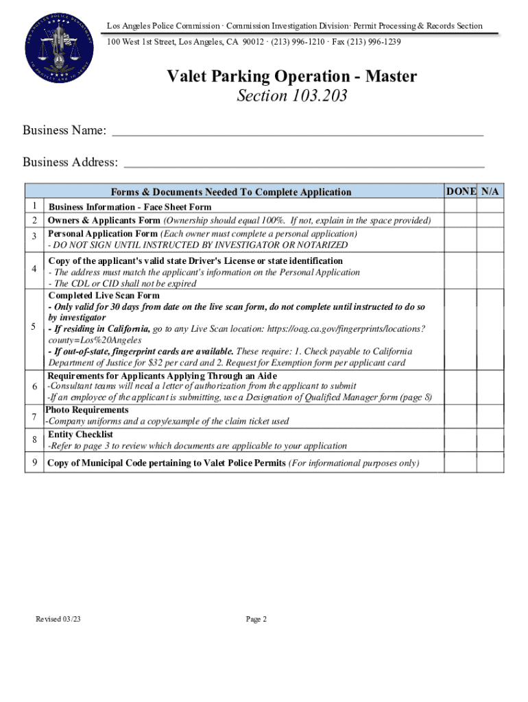 Get the free Valet Parking Operation - Master