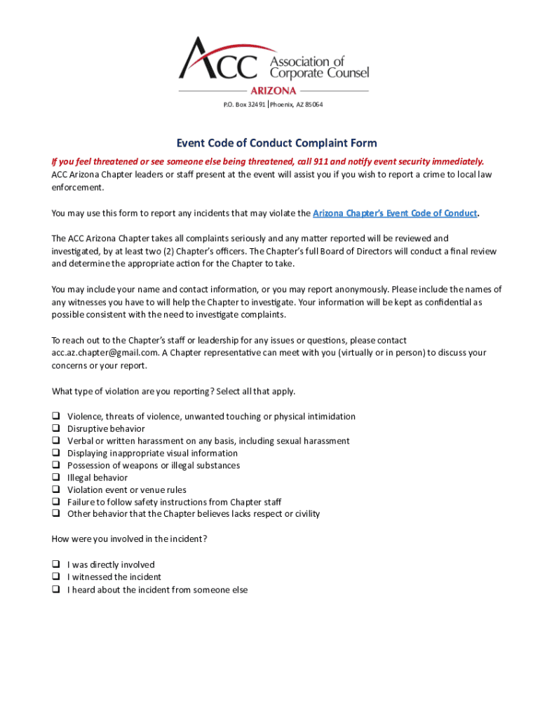Get the free Event Code of Conduct Complaint Form