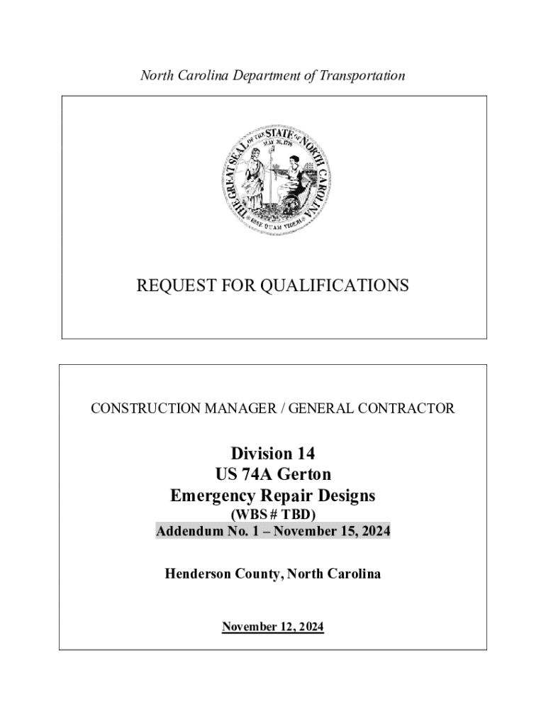 Get the free North Carolina Department of Transportation Rfq for Cm/gc