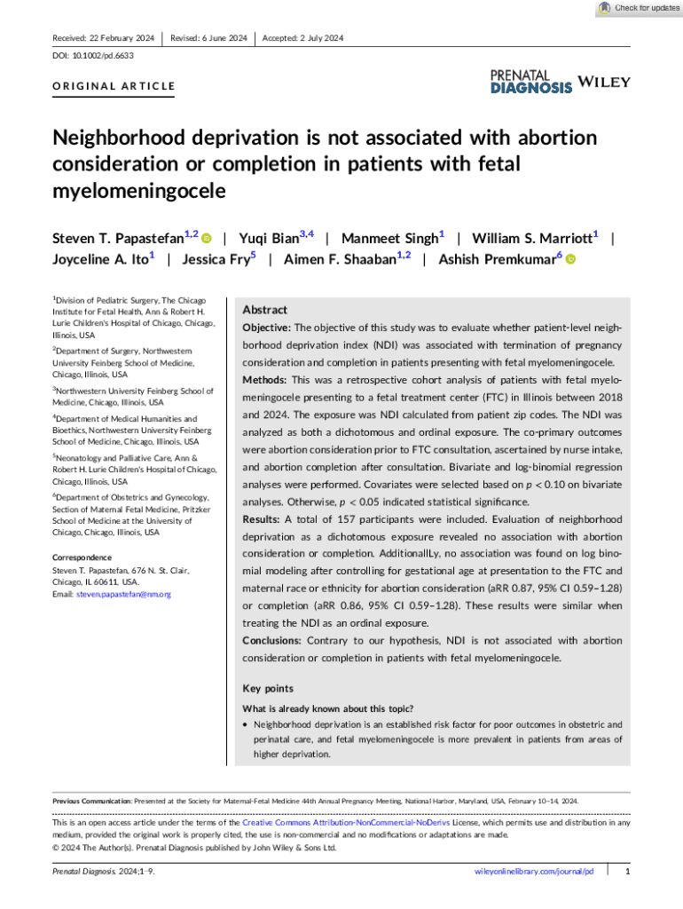 Received: 22 February 2024 DOI: 10.1002/pd.6633 Revised: 6 June 2024Accepted: 2 July 2024ORIGINAL ARTICLENeighborhood deprivation is not associated with abortion consideration or completion in patients