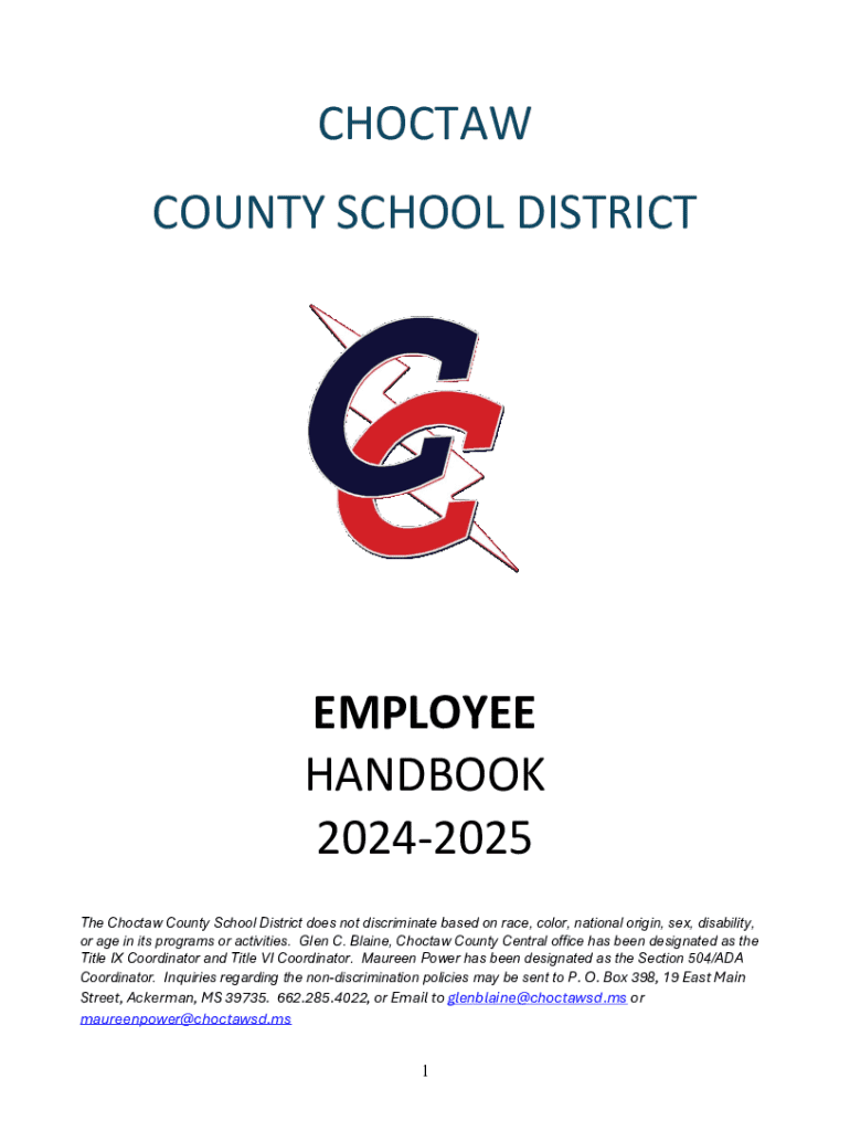 This handbook provides information regarding the operations, procedures, and policies relevant to the employees of the Choctaw County School District for the 2024-2025 academic year, ensuring compliance and promoting a positive work environment.