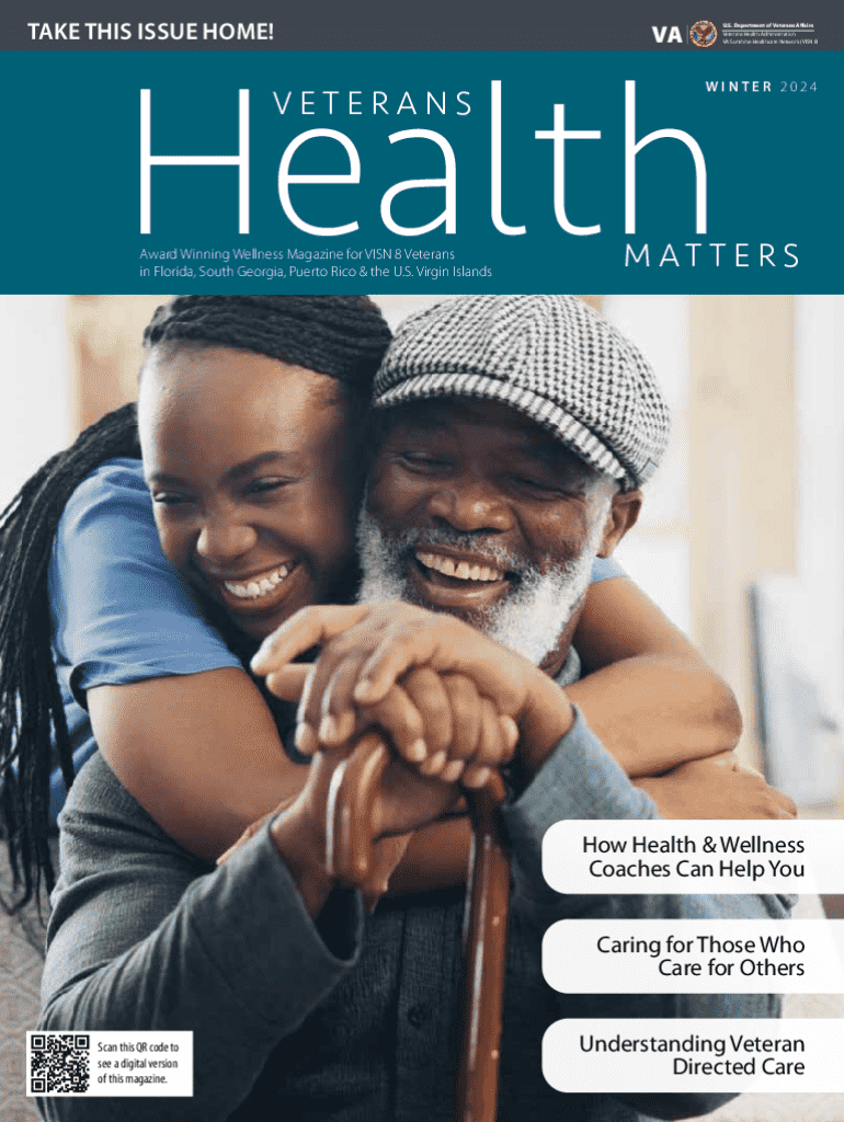 TAKE THIS ISSUE HOME!VAU.S. Department of Veterans Aairs Veterans Health Administration VA Sunshine Healthcare Network (VISN 8)Health VETERANSAward Winning Wellness Magazine for VISN 8 Veterans in Florida, South Georgia, Puerto Rico & the U.S. Virgin IslandsWINTER 2024M AT T E R SHow Health & Wellness Coaches Can Help You Caring for Those Who Care for Others Scan this QR code to see a digital version of this magazine.Understanding Veteran Directed CareVAU.S. Department of Veterans