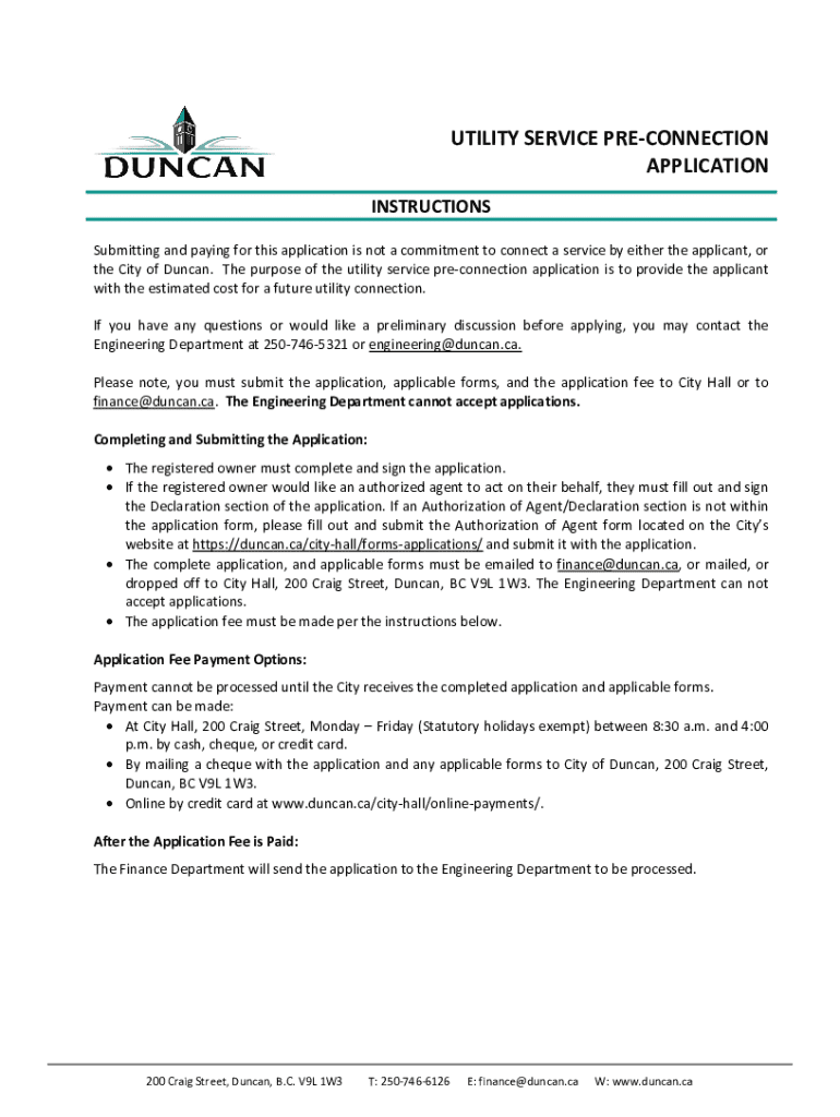 Get the free Utility Service Pre-connection Application