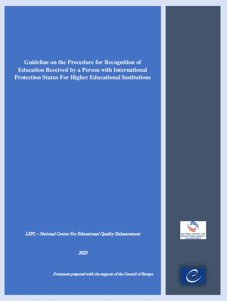 Guideline on the Procedure for Recognition of Education Received by a Person with International Protection Status For Higher Educational InstitutionsLEPL National Center For Educational Quality Enhancement2023Document