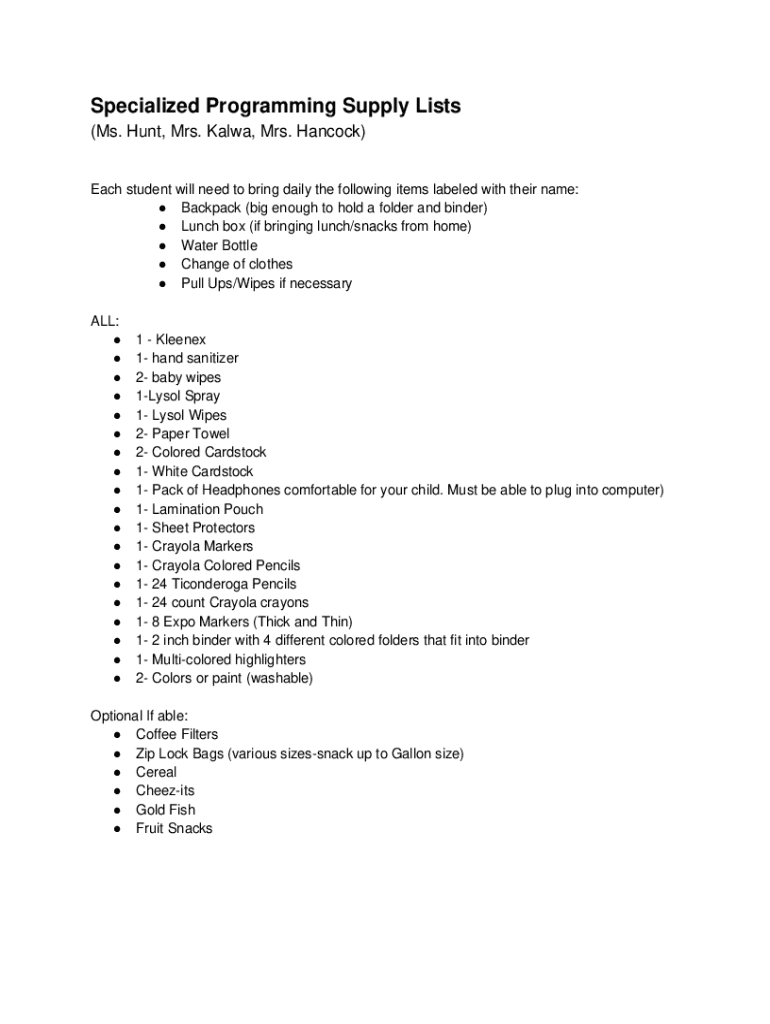 Get, Create, Make and Sign specialized programming supply lists