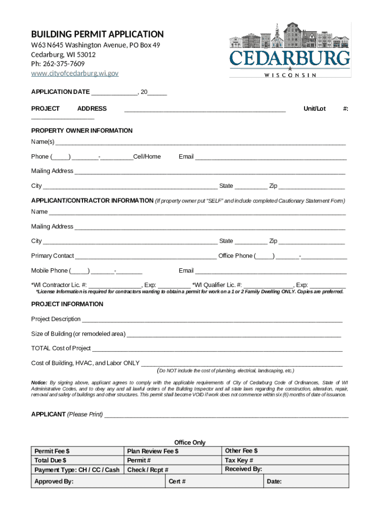 Template Building Permit Application instructions