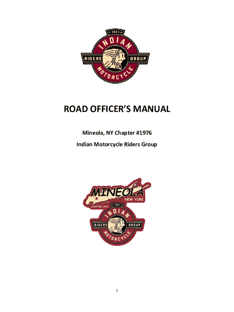 Este manual proporciona directrices y responsabilidades para los oficiales de carretera del grupo de motociclistas Indian Motorcycle Riders Group, con el objetivo de planificar y liderar paseos seguros y organizados para los miembros y sus invitados.
