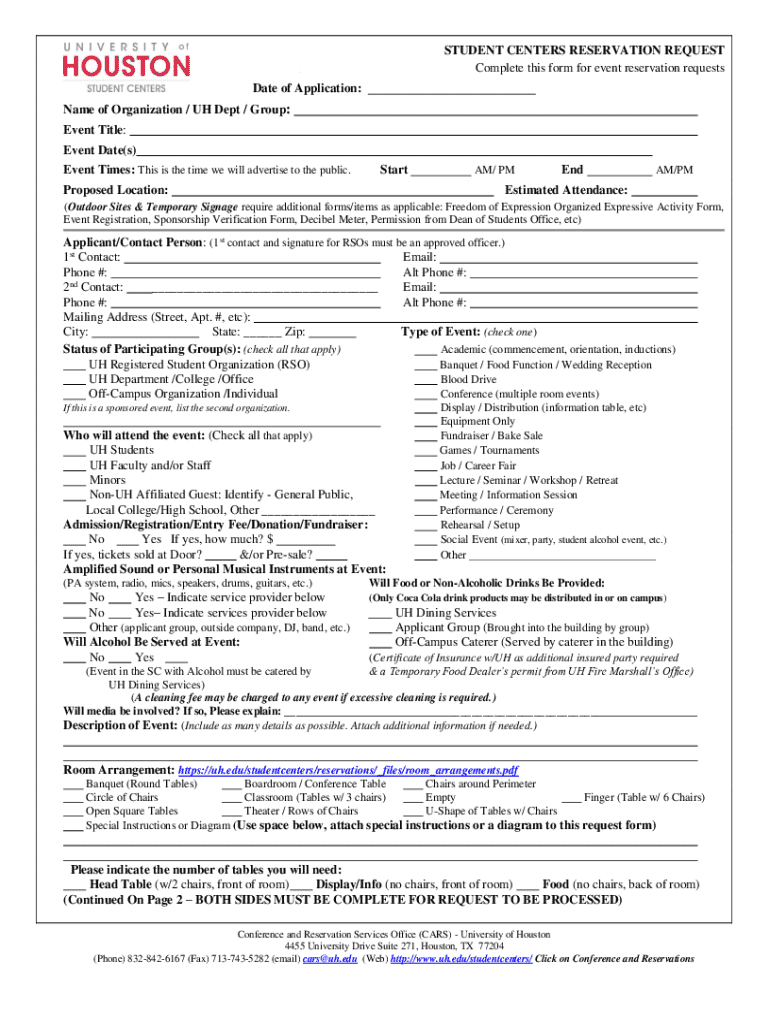 To fill out a student centers reservation request, individuals must complete a designated form that typically includes details about the event, date and time of reservation, expected number of attendees, and any specific requirements for the space.