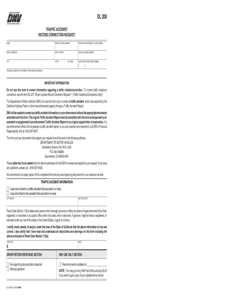 DL 208 can be filled out by providing the required information in the correct fields on the form. It's important to follow instructions carefully to ensure that all necessary information is accurately reported.