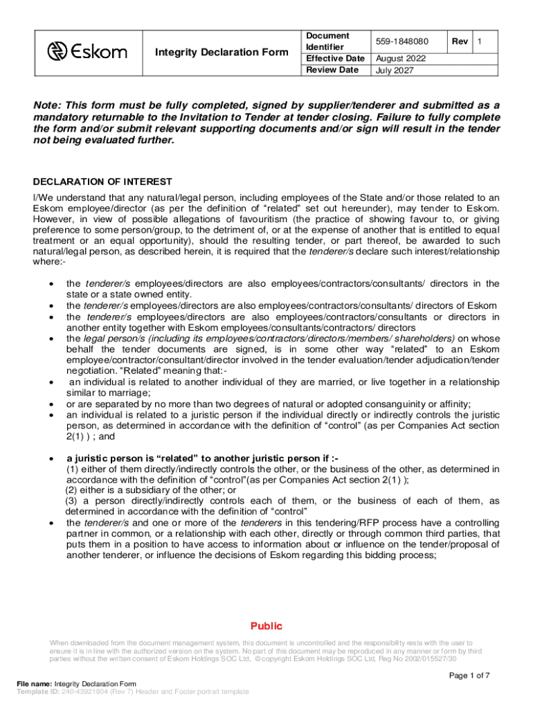 Generally, public officials, government employees, and businesses participating in government contracts or tenders are required to file an integrity declaration form.