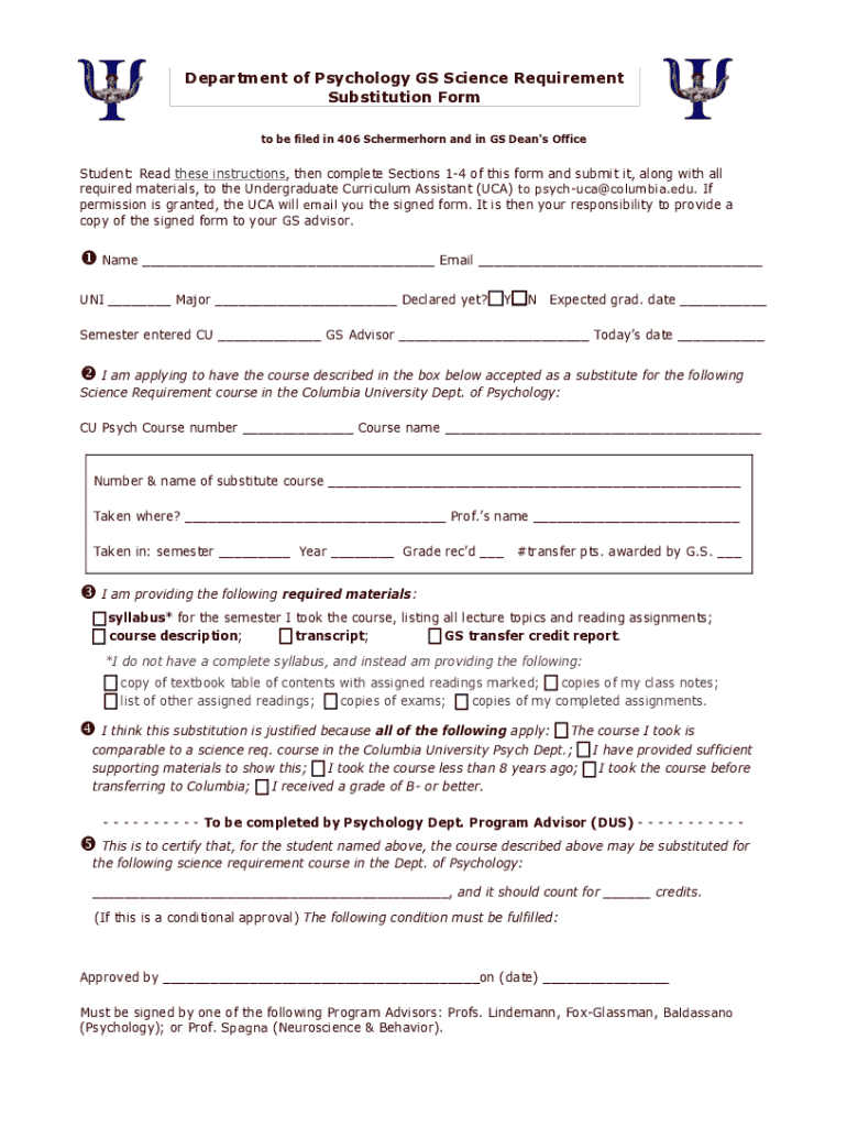 Get the free Department of Psychology Gs Science Requirement Substitution Form