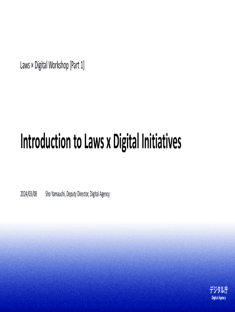 Laws Digital Workshop [Part 1]Introduction to Laws x Digital Initiatives 2024/03/08Sho Yamauchi, Deputy Director, Digital AgencyDisclaimer Explanations pertaining to amendments to laws included in this presentation have been prepared by a member of staff taking clarity into consideration and do not represent the official view of the Japanese government.2Laws are the foundation of our society. The public expects the development of services with high social value that utilize data of laws