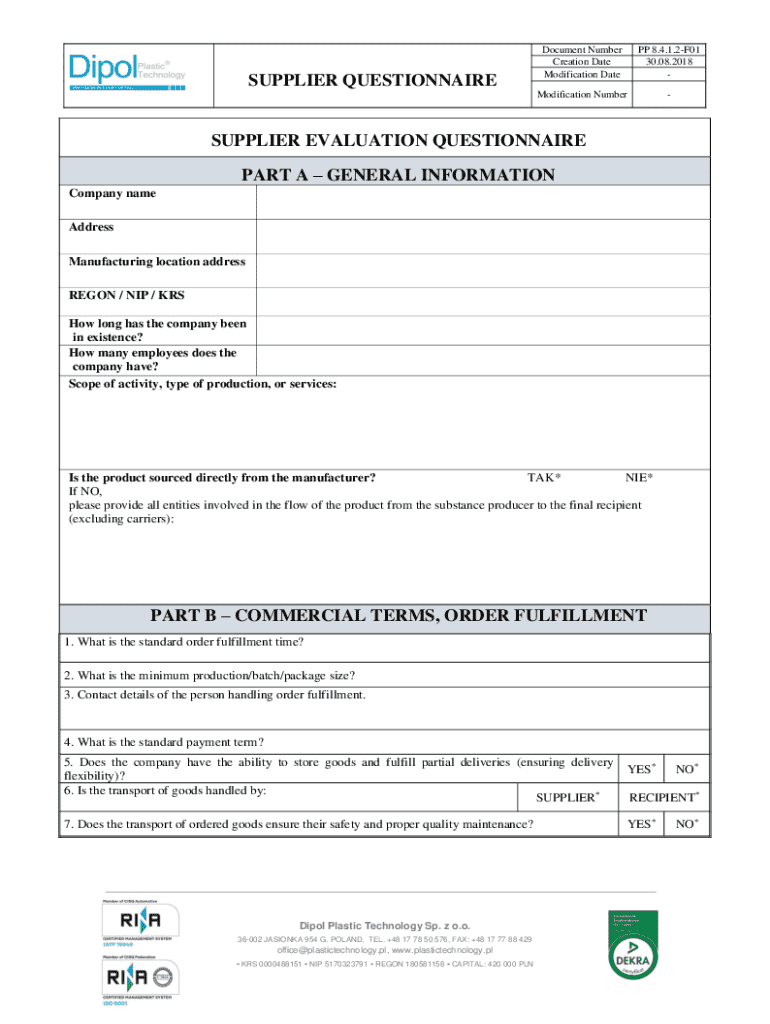 Get the free Supplier Questionnaire