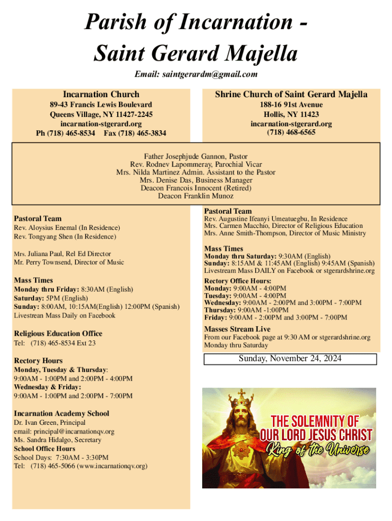 Get the free Incarnation - St. Gerard Majella Bulletin