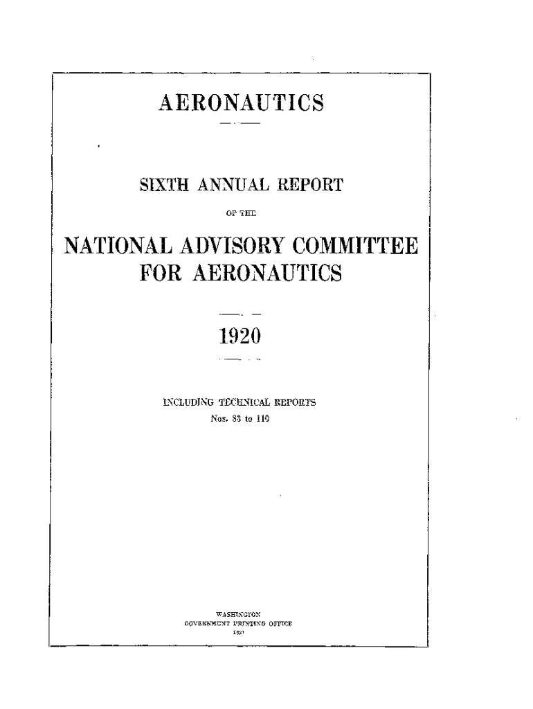 Get the free Sixth Annual Report of the National Advisory Committee for Aeronautics 1920 - ntrs nasa