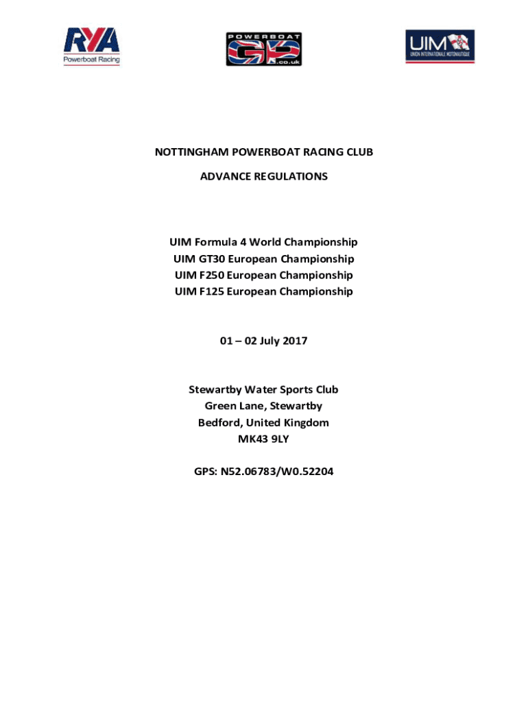 Get the free Nottingham Powerboat Racing Club Advance Regulations