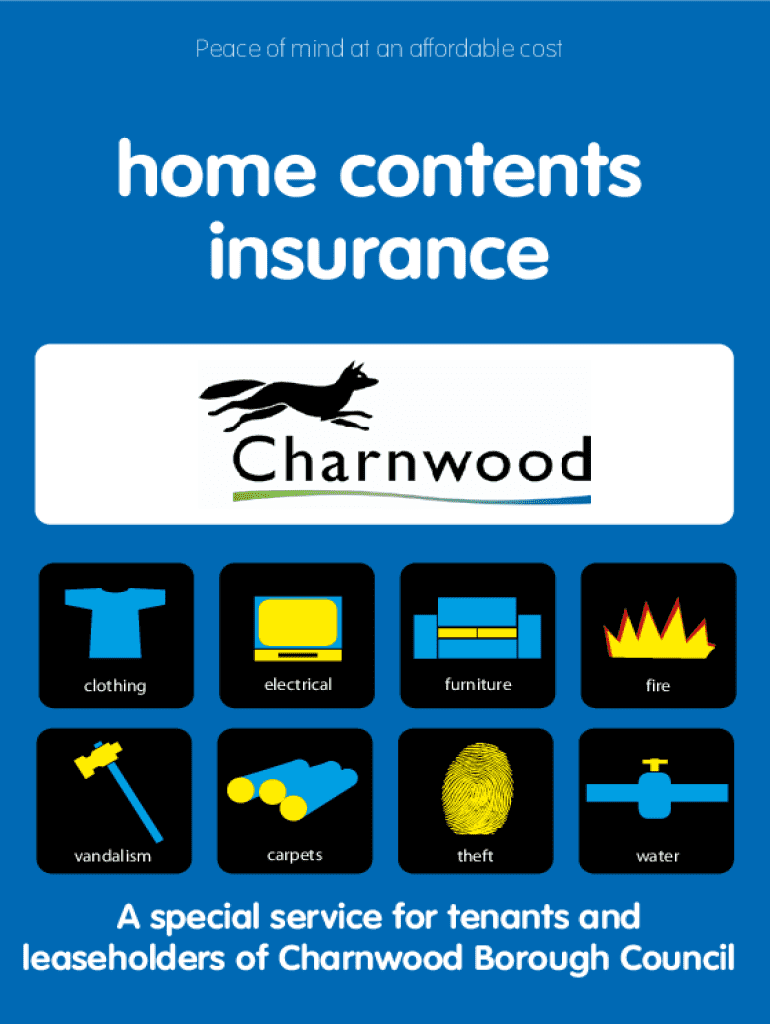 A special insurance scheme for tenants and leaseholders of Charnwood Borough Council covering home contents against theft, fire, vandalism, and water damage. This document includes details on the
