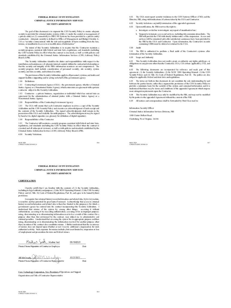 Get the free 01 The CGA must report security violations to the CJIS Systems Officer (CSO) and the