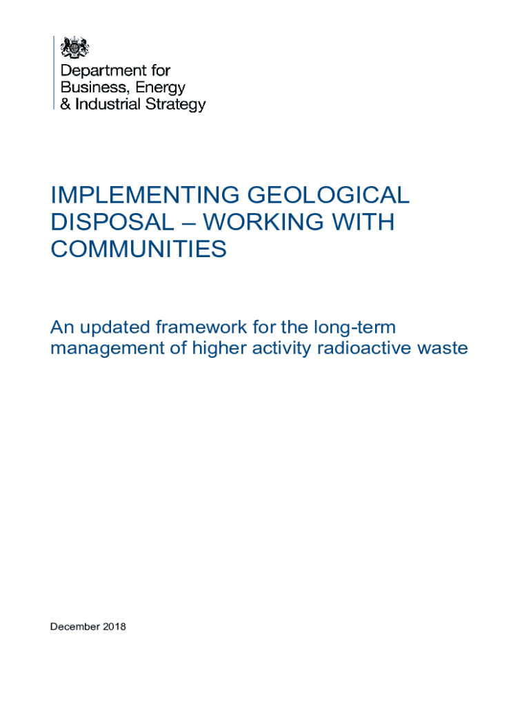 IMPLEMENTING GEOLOGICAL DISPOSAL WORKING WITH COMMUNITIES An updated framework for the longterm management of higher activity radioactive wasteDecember 2018IMPLEMENTING GEOLOGICAL DISPOSAL WORKING
