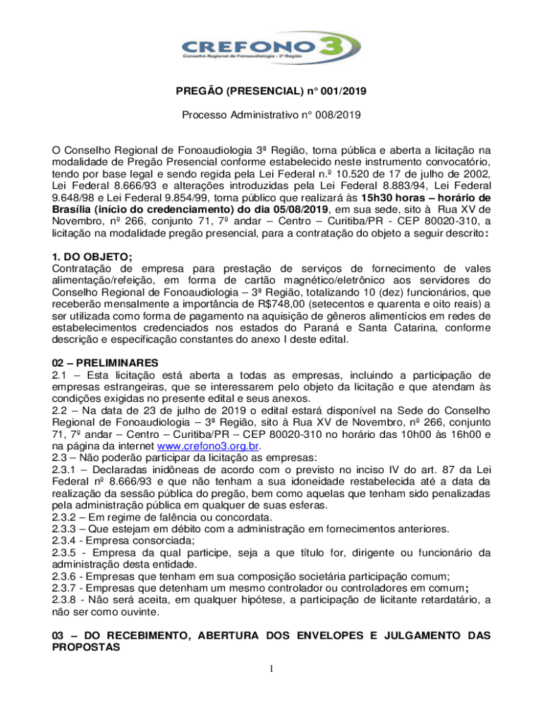 Obtenha o gratuito Pregão Presencial N° 001/2019